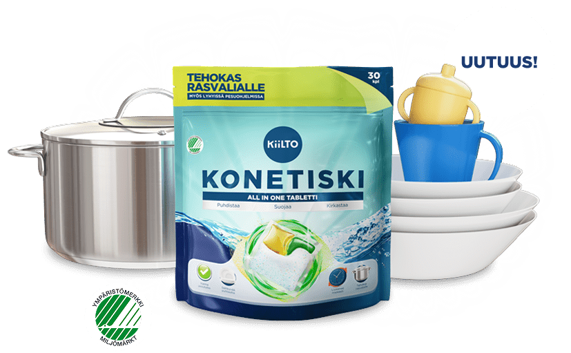 Kiillon konetiskivalikoima täydentyy uudella Joutsenmerkityllä konetiskitabletilla. Tehokas all-in-one-konetiskitabletti poistaa rasvan, tahrat ja pinttymät varmasti joka pesukerralla ja jättää astiat kirkkaan puhtaiksi. Uusi tabletti tuo Kiillon tuttua puhtautta koneastianpesuun. Saatavilla 30 ja 60 kappaleen pakkauksissa.