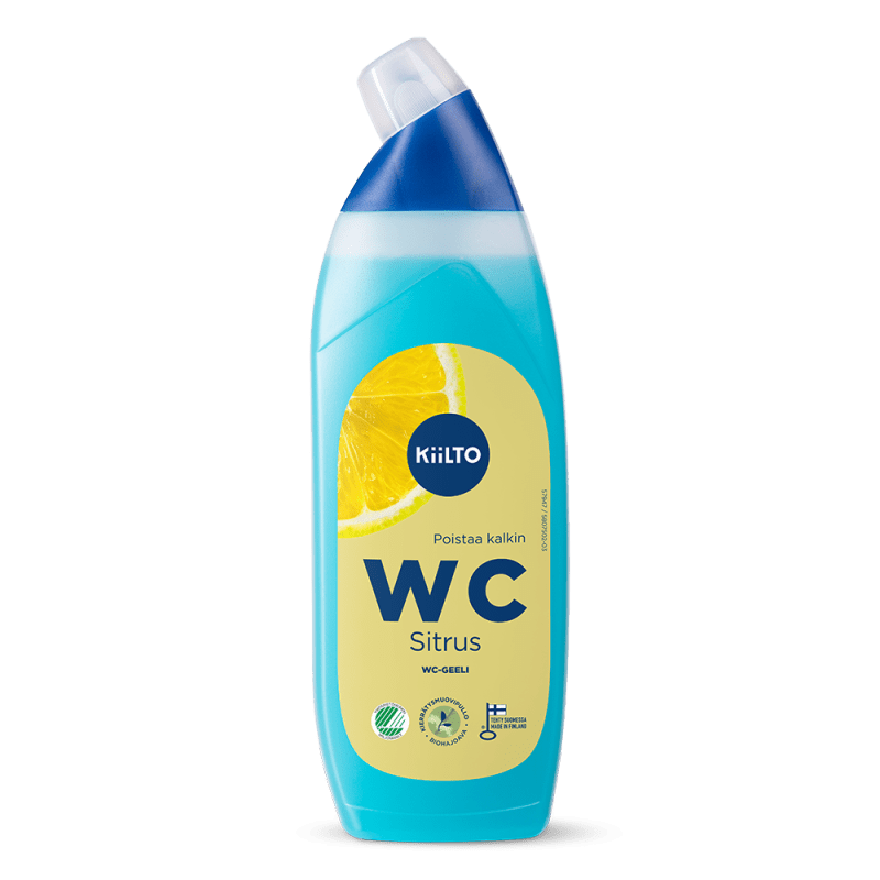 Kotimainen Kiilto WC-geeli Sitrus puhdistaa WC-istuimen altaan tehokkaasti ja ympäristöystävällisesti jättäen raikkaan tuoksun. Helposti biohajoava maitohappo poistaa tehokkaasti kalkkisaostumia. Ympäristöystävällinen, Joutsenmerkitty tuote on valmistettu Hankasalmella ja pakattu 100 % kierrätysmuovipulloon. Tuotteelle myönnetty Joutsenmerkki takaa, että tuotteen ympäristövaikutukset on arvioitu, tuote on käyttäjälleen turvallinen ja tutkitusti tehokas.